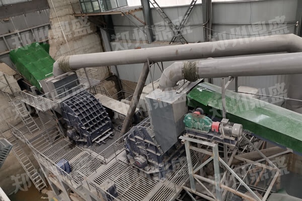 料倉內(nèi)的物料進入振動篩分喂料機后,喂料機前端篦條將物料分成兩種物料<70mm和>70mm,其中<70mm經(jīng)皮帶輸送機送至除土篩,經(jīng)除土篩篩分出>10mm和<10mm兩種物料,其中<10mm的作為渣土經(jīng)由輸送機輸送至廢渣區(qū)存儲,>10mm被送至ZPC1820錘式破碎機后篩分上料皮帶;>70mm的物料經(jīng)過溜槽直接進入ZPC1820錘式破碎機進行粗碎。