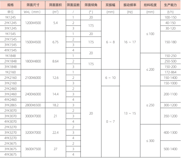 YK圓振動(dòng)篩型號(hào)參數(shù):