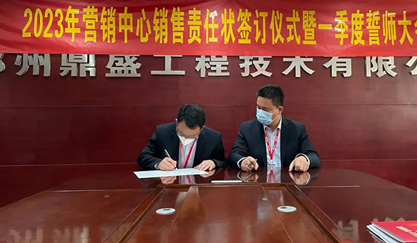 蓄力量、育希望、創(chuàng)輝煌。近日,鄭州鼎盛為確保2023年度銷售工作取得突破性進(jìn)展,再上一個(gè)新臺(tái)階。營(yíng)銷中心全體齊聚公司總部,舉行“2023年?duì)I銷中心銷售責(zé)任狀簽訂儀式暨一季度誓師大會(huì)”,公司主要領(lǐng)導(dǎo)出席儀式。