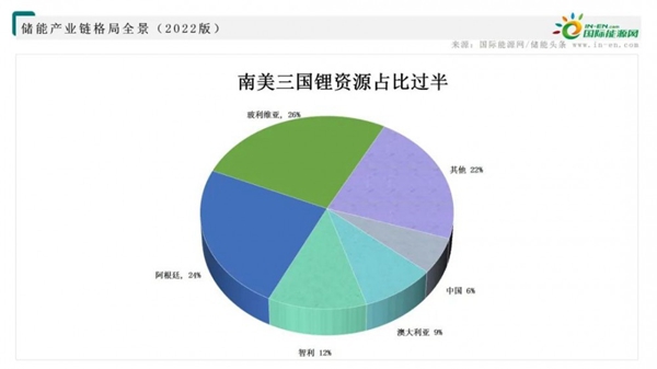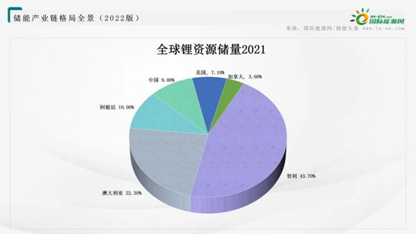 2021年較新數(shù)據(jù)顯示,當前世界已探明的鋰礦資源中,智利、澳大利亞、阿根廷、中國、美國5個國家儲量占比達到85.73%。