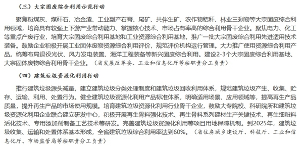 ——鼓勵(lì)大宗固廢綜合利用、建筑垃圾資源化利用,建設(shè)2-3個(gè)大宗固廢綜合利用基地、大宗固體廢物綜合利用骨干企業(yè),全省建筑垃圾綜合利用率達(dá)到60%。