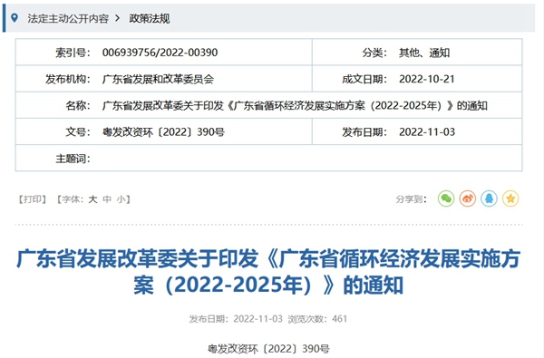 近日,廣東省發(fā)展改革委印發(fā)《廣東省循環(huán)經(jīng)濟(jì)發(fā)展實(shí)施方案(2022-2025年)》(以下簡(jiǎn)稱方案),對(duì)廣東省大力發(fā)展循環(huán)經(jīng)濟(jì),推進(jìn)資源節(jié)約集約利用,構(gòu)建資源循環(huán)型產(chǎn)業(yè)體系和廢舊物資循環(huán)利用體系,對(duì)保障資源安全,推動(dòng)實(shí)現(xiàn)碳達(dá)峰、碳中和,促進(jìn)生態(tài)文明建設(shè)具有重大意義。