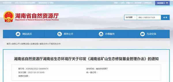 10月10日,湖南省自然資源廳、生態(tài)環(huán)境廳聯(lián)合印發(fā)《湖南省礦山生態(tài)修復(fù)基金管理辦法》(以下簡(jiǎn)稱《辦法》)。