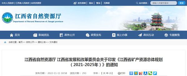 日前,江西省自然資源廳、發(fā)改委印發(fā)《江西省礦產(chǎn)資源總體規(guī)劃(2021-2025年)》(下附全文),提出至2025年,江西戰(zhàn)略性與優(yōu)勢礦產(chǎn)實現(xiàn)新的找礦突破,資源保障能力不斷增強。礦業(yè)開發(fā)布局與結(jié)構(gòu)進一步優(yōu)化,礦產(chǎn)資源開發(fā)利用水平明顯提升,礦業(yè)產(chǎn)業(yè)集群進一步壯大。
