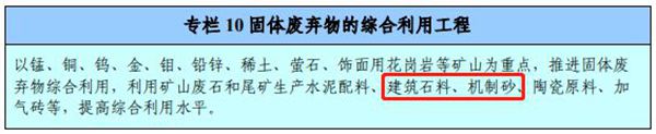 《規(guī)劃》明確,根據(jù)各地區(qū)資源稟賦、環(huán)境承載力、市場需求、運輸半徑等條件,合理確定區(qū)內(nèi)砂石采礦權(quán)總量、最低開采規(guī)模,有序投入砂石采礦權(quán)。積極引導有條件地區(qū)劃定集中開采區(qū)。在集中開采區(qū)內(nèi),積極推動建設(shè)儲量規(guī)模1500萬噸以上、生產(chǎn)規(guī)模 100萬噸/年以上的礦山,促進砂石資源規(guī)模開發(fā)。 合理確定制砂所需建筑用石料采礦權(quán)出讓政策,保障機制砂原材料供應。在保證產(chǎn)品質(zhì)量和生態(tài)安全的前提下,鼓勵利用礦山尾礦與廢石生產(chǎn)機制砂,節(jié)約資源,提高礦山固體廢物綜合利用水平。