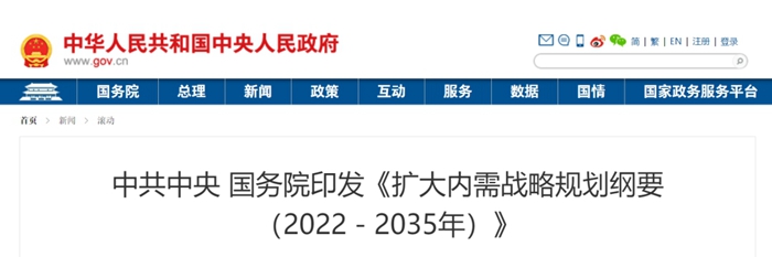 《綱要》指出,堅定實施擴大內需戰(zhàn)略、培育完整內需體系,是加快構建以國內大循環(huán)為主體、國內國際雙循環(huán)相互促進的新發(fā)展格局的必然選擇,是促進我國長遠發(fā)展和長治久安的戰(zhàn)略決策。