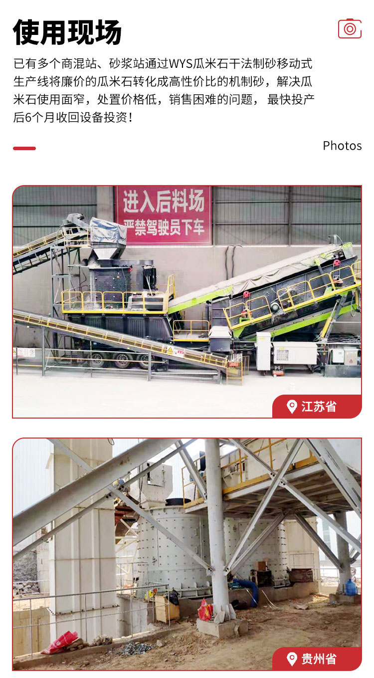 該項目為某大型建材集團商混站補充項目,對生產過程中產生的瓜米石進行制砂,解決瓜米石爆倉停產、使用面窄、處置價格低、銷售困難的問題,實現經濟效益較大化。